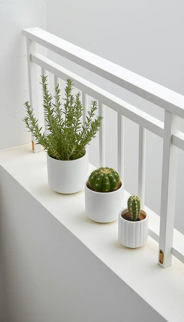 Arrange your capsule collection in a row along your railing or in a stepped cluster in one corner, moving from shortest to tallest. Odd numbers — three or five pots — always read more naturally than even groupings. Scented herbs like lavender and rosemary add a sensory dimension that’s particularly rewarding on a balcony: your space doesn’t just look calming, it smells calming. This is the kind of layered, considered detail that distinguishes a truly designed outdoor space from one that simply happened.